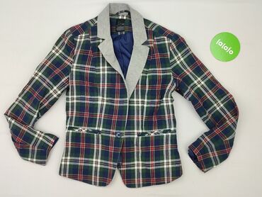 Marynarka damska Sinsay - Rozmiar: XL - Krój: dwurzędowy, z klasycznymi klapami - Wzór: krata w odcieniach szarości, czerni, żółci i fioletu - Zapięcie: sześć guzików z przodu; na mankietach po tr...