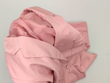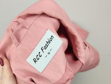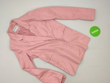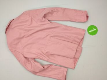 Różowy damski żakiet bez zapięcia - Krój: lekko dopasowany, bez kołnierza, otwarty przód - Rękawy: długie, mankiety ozdobione trzema złotymi guzikami - Rozmiar z metki: M - Materiał: 100% polieste...