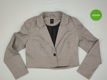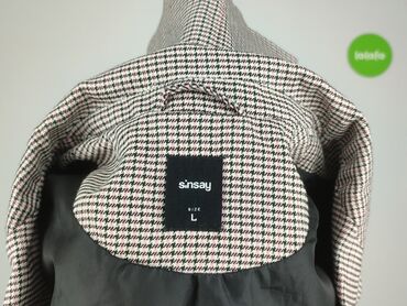 Różowy żakiet Sinsay, rozmiar L - Fason: długi, bez zapięcia, z miękkimi klapami - Rękawy: 3/4 z możliwością podwinięcia; mankiety oraz wnętrze w różowo‑białe, pionowe paseczki - Kieszenie: dwie n...