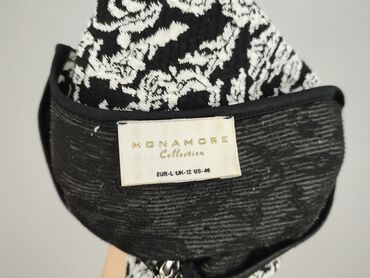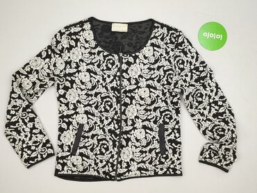 Żakiet damski Premium Collection - Kolor: czarny z subtelnym, żakardowym wzorem roślinnym (ton w ton) - Krój: dłuższy, jednorzędowy, zapinany na 2 guziki - Kołnierz: klasyczne klapy - Rękawy: dług...