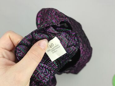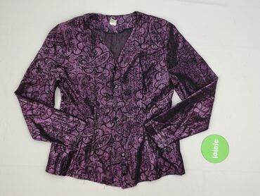 Fioletowa damska marynarka z eleganckim wzorem paisley. Posiada podszewkę, co zwiększa komfort noszenia. Idealna do stylizacji na różne okazje, od formalnych po bardziej casualowe. Wykonana z wysok...Stan: