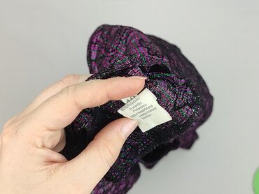 - Kolor: fioletowy z czarnym, dekoracyjnym, roślinnym wzorem; delikatny, połyskujący efekt dzięki metalicznym nitkom