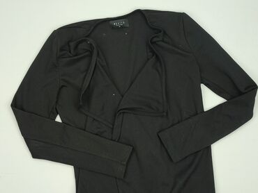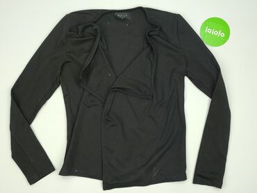 H&M – czarny damski żakiet/płaszczyk - Fason: krótki, lekko taliowany, z kołnierzem - Zapięcie: duże dekoracyjne guziki z przodu (2) + ozdobny pasek z guzikami z tyłu - Rękawy: długie - Kieszenie:...