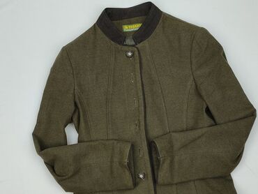 Damska marynarka/żakiet Creator, rozmiar S. - Kolor: szarooliwkowy - Fason: taliowany, z klapami; dekoracyjne przeszycia podkreślające sylwetkę - Zapięcie: dwa guziki z przodu - Kieszenie: dwie du...