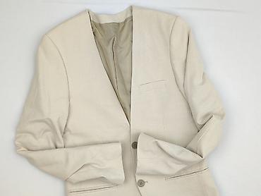 Damska marynarka w kolorze beżowym - Krój: klasyczny, jednorzędowy, z szerokimi klapami - Zapięcie: 2 guziki z przodu; po 3 guziki na mankietach - Kieszenie: dwie z klapami z przodu - Wzór: delika...
