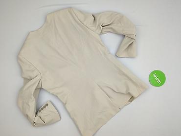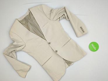 Beżowy żakiet damski Moon Collection – rozmiar M - Krój: taliowany, jednorzędowy, zapinany na jeden guzik - Kołnierz z delikatnym wyłogiem, miękko układający się przy szyi - Długie rękawy - Dwie p...