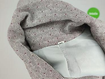 - Tkanina: żakardowy materiał z drobnym, kwadratowym/diamentowym wzorem w odcieniach szarości z subtelnymi bordowymi akcentami