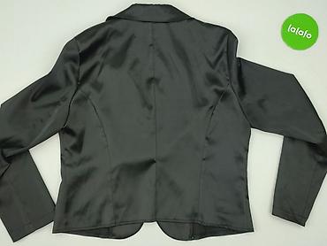 Damska marynarka czarna, klasyczny fason - Rozmiar: 3XL (na metce) - Krój: jednorzędowy, zapinany na 1 guzik - Kołnierz: klasyczne, smukłe klapy - Rękawy: długie, z ozdobnymi guzikami przy mankiet...