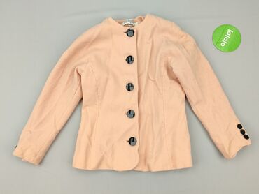 Damska marynarka w kolorze łososiowym z czarnymi, okrągłymi guzikami z przodu. Posiada zaokrąglone krawędzie u dołu, dodając jej delikatności. Prosty krój i minimalistyczny design sprawiają, że marynarka jest wszechstronnym elementem garderoby, idealnym do różnych stylizacji. Na mankietach rękawów znajdują się mniejsze, dopasowane guziki, uzupełniające całość.