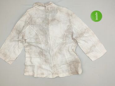 Lniana marynarka/kurtka damska w kolorze naturalnego beżu. - Materiał: 100% len (mięsisty, przewiewny splot) - Krój: prosta, lekko dopasowana sylwetka - Zapięcie: ukryte z przodu (na guziki) - Koł...