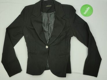 Damska marynarka w kolorze czarnym - Klasyczny krój z klapami i pojedynczym zapięciem na guzik - Długość do bioder, lekko taliowana sylwetka - Dwie przednie, wpuszczane kieszenie - Długie rękawy -...