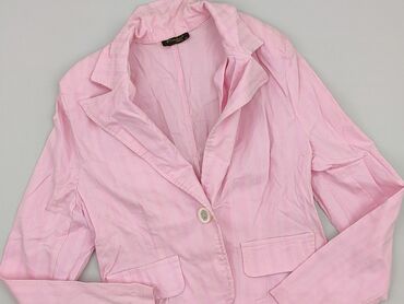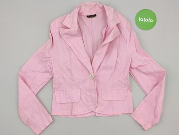 Różowy żakiet damski Supreme Top, rozmiar 40 - Krótki żakiecik z krótkim rękawem - Kolor: pudrowy róż z jasnoróżowym/łososiowym, tłoczony, falujący wzór - Fason: lekko taliowany, z otwartymi klapa...