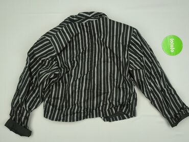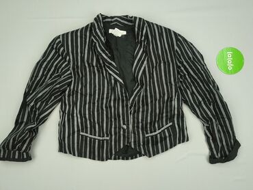 Marynarka damska w czarno‑białe pasy - Fason: taliowana, z asymetrycznym przodem i zaokrąglonym dołem - Zapięcie: bez zapięcia (narzutka) - Dekolt: w kształcie litery V - Rękawy: długie - Kieszeni...