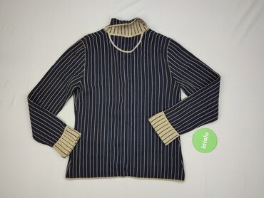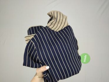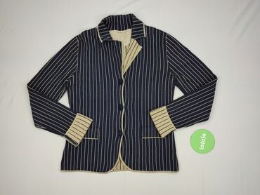 Granatowa marynarka damska - Klasyczny, taliowany fason z klapami - Zapinana na jeden guzik (kontrastowy, jasny) - Długi rękaw; możliwość podwinięcia mankietów z delikatną, prążkowaną wstawką wewn...Stan:
