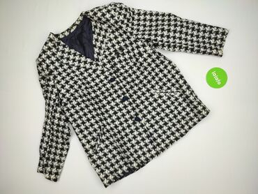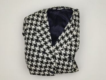 Marynarka damska w pepitkę, rozmiar 40. - Krój: klasyczny, jednorzędowy, zapinany na 4 guziki z przodu; mankiety z guzikami. - Wzór i kolor: drobna czarno-biała pepitka. - Kołnierz: z klapami. - K...