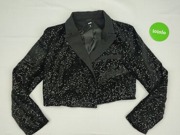 Marynarka damska Sinsay - Kolor: czarny - Rozmiar: XS (na metce) - Fason: taliowana, jednorzędowa - Zapięcie: jeden guzik z przodu - Kołnierz: klasyczne klapy - Rękawy: długie, mankiety z dwoma gu...
