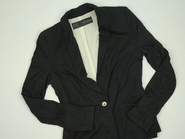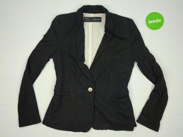 Żakiet damski Zara Woman - Model: marynarka w paski - Kolor: czarno‑biały (kontrastowe pionowe paski, białe lamówki) - Krój: dopasowany, jednorzędowy na jeden guzik, klapy w szpic - Kieszenie: dwi...