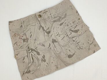 Beżowa spódnica mini w stylu cargo, wykonana w 100% z bawełny. Posiada dwie kieszenie cargo z klapami, zapinane na metalowe guziki, oraz dwie otwarte kieszenie boczne. Spódnica zapinana jest na zam...Stan: