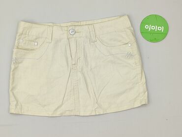 Spódniczka mini Monntain - Kolor: jasny beż/piaskowy, delikatna faktura tkaniny - Skład: 95% bawełna, 5% elastan – miękka, lekko elastyczna - Rozmiar z metki: 31 - Krój: mini, fason „jeansowy” - Z...Stan: