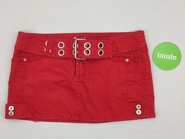 Czerwona spódniczka Looky, rozmiar M. - Model: rozkloszowana, z falbanami - Pas: szeroki, elastyczny ściągacz z troczkiem do regulacji - Długość: mini - Materiał: 65% bawełna, 35% poliester (miękk...