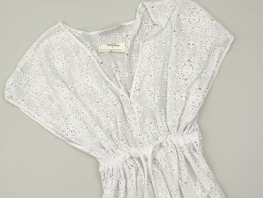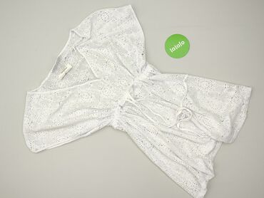 Biała, przewiewna narzutka plażowa/tunika - Lekka, półtransparentna tkanina o delikatnej, kreszowanej fakturze – szybko schnie i oddycha - Fason luźny, prosty, z szerokimi rękawkami typu kimono - ...