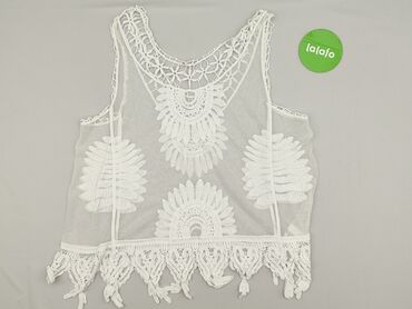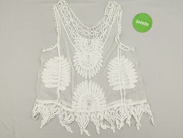 Ażurowa bluzka/sweterek damski bez rękawów - Kolor: biały - Materiał: dzianina ażurowa z wyraźnym, drobnym wzorem (lekko prześwitująca) - Krój: prosta linia, luźniejszy fason; lekko opadające rami...