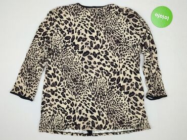 Bluzka damska z krótkim rękawem, wzór w beżowe „animal/abstract” plamki. - Krój: luźny, lekko wydłużony tył (asymetryczny dół), okrągły dekolt. - Rękawy z możliwością podpięcia na napy (zapinane g...