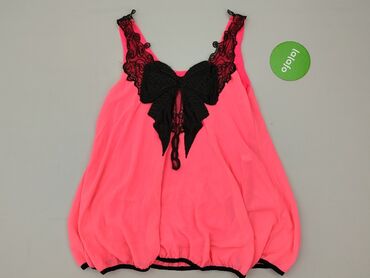 Bluzka damska neonowa różowa z koronką i ozdobami - Krój: dopasowany, krótki rękaw, dekolt okrągły - Przód: gładki, mała ozdobna kieszonka z krótkim złotym zamkiem - Tył: cały z ażurowej koronki w...