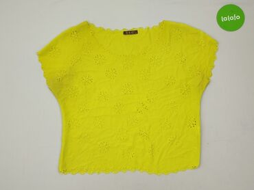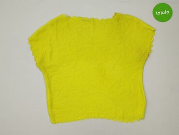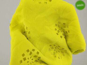 Żółta bluzka damska z lekkiej, ażurowej dzianiny z podszewką. - Krój: luźny, z wydłużonym tyłem (asymetryczny dół – krótszy przód, dłuższy tył). - Rękawy 3/4 z możliwością podpięcia na guzik. - De...
