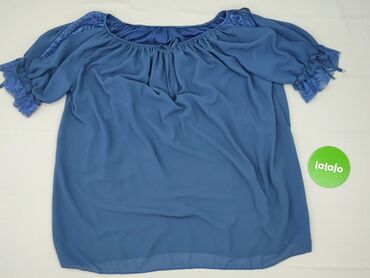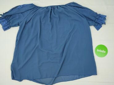 Zwiewna bluzka damska w kolorze jasnego błękitu. - Krój typu poncho/cape – luźny, z szerokimi, opadającymi rękawami i asymetrycznymi krawędziami - Okrągły dekolt - Delikatny, półtransparentny mate...