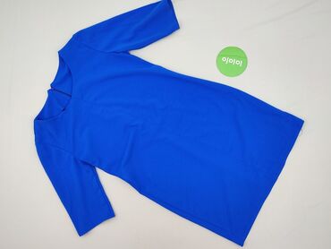 Sukienka damska, kolor kobaltowy (chabrowy), rozmiar S. - Krój: dopasowana góra, rozkloszowany dół. - Rękaw: krótki. - Dekolt: okrągły. - Materiał: elastyczna dzianina z tłoczonym, roślinnym wzorem...
