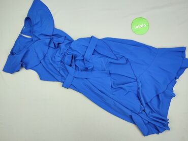 Sukienka damska kopertowa w kolorze jasnego błękitu - Fason: kopertowy z zakładkami, asymetryczne wykończenie dołu - Dodatki: delikatna falbana biegnąca po skosie z przodu - Rękaw: 3/4 - Dekolt: w...