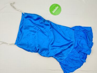 Sukienka mini w kolorze intensywnego kobaltu. - Fason: dopasowana, z bocznymi marszczeniami i wycięciem cut-out pod biustem. - Góra: cienkie ramiączka spaghetti, okrągłe marszczone łączenie na śro...