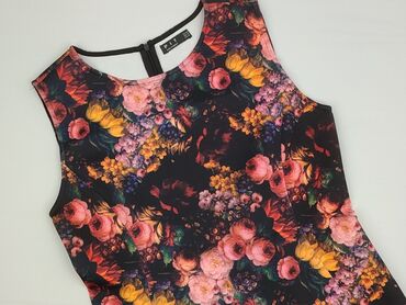 Sukienka damska Pimkie w kwiaty - Fason: dopasowana, mini - Dekolt: okrągły z wycięciem na plecach (łezka) i ozdobnym paskiem łączącym ramiączka - Rękawy: szerokie ramiączka - Wzór: gęsty, wieloko...