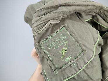 Kurtka damska w stylu parki, khaki, z naszywkami i dekorami - Model: lekka parka/wiatrówka z wysoką stójką - Kolor: oliwkowa zieleń (khaki) - Materiał: 100% bawełna (metka na zdjęciu) - Rozmiar: S...