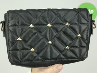 Czarna damska torebka na ramię/crossbody - Materiał: ekoskóra - Kolor: czarny, matowy - Przód: gładki panel z przeszywaną, pikowaną wstawką w romby i małym metalowym nitem - Tył: w całości pikowan...