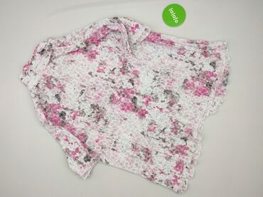 Bluzka damska z krótkim rękawem w kwiaty - Kolor: biały w wielobarwny, akwarelowy nadruk kwiatowy (odcienie różu, fioletu, niebieskiego i szarości) - Krój: luźny, lekko rozkloszowany dół; karczek ...