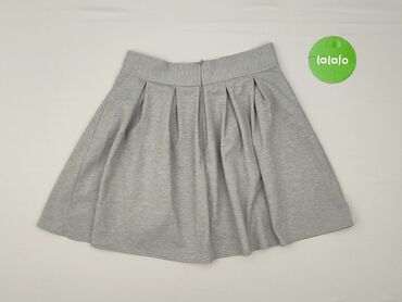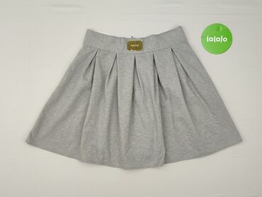 Szara spódnica z zakładkami - Krój: rozkloszowana, z szerokim pasem i głębokimi zakładkami z przodu i z tyłu - Długość: mini/tuż nad kolano (w zależności od wzrostu) - Zapięcie: metalowy suwak z t...