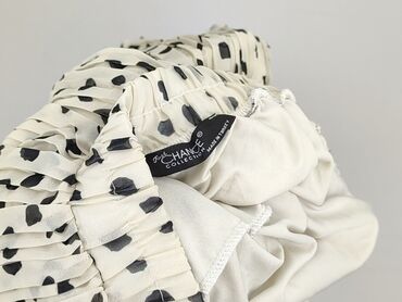 Plisowana spódnica damska - Krój: rozkloszowana, wielowarstwowe plisy nadają lekkości i swobodnego ruchu - Wzór: kremowe tło w drobne groszki z brązowym, szkicowanym motywem kwiatów (róże i liście...