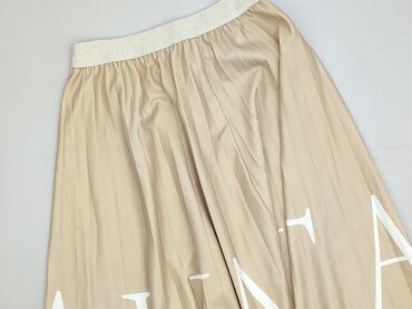 Plisowana spódnica damska w kolorze beżowym. - Krój: rozkloszowany, z szerokimi, równymi plisami na całym obwodzie - Talia: wszyta gumka z tyłu (komfortowe dopasowanie) - Długość: midi/przed kolan...Stan: