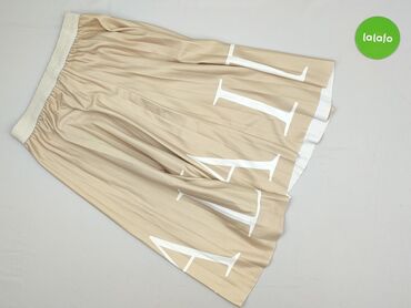 Spódnica midi w kolorze jasnego beżu. - Fason: prosta, lekko rozkloszowana, długość do połowy łydki. - Pas: szeroka, elastyczna gumka z marszczeniem; szlufki do ewentualnego paska. - Materiał: zwi...