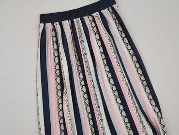 Spódnica damska Sinsay, rozmiar S - Krój: rozkloszowana, z szerokimi kontrafałdami, podkreśla talię - Wzór: biało‑czarne, poziome paski - Talia: wszyty, stabilny pas - Zapięcie: suwak z tyłu - Mat...
