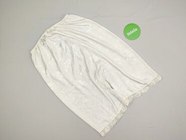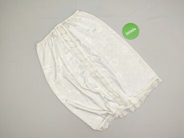 Biała spódnica z elastycznego dzianinowego materiału, z szerokim pasem zdobionym koronką. - Krój: rozszerzany/lekko trapezowy, panelowy, zapewnia swobodę ruchów - Talia: szeroki, elastyczny pas; p...