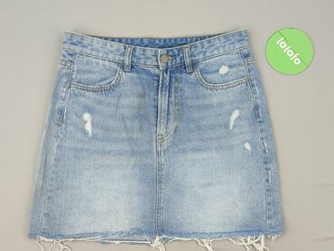 Jeansowa spódnica damska H&M Denim - Styl: mini, prosty krój A-line - Kolor: klasyczny niebieski denim z przetarciami - Detale: surowo wykończony dół z postrzępioną krawędzią, delikatne „distresse...