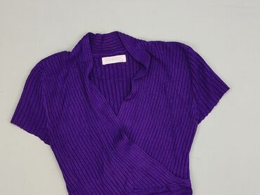Krótki rękawFioletowa, prążkowana bluzka damska DD&MM.