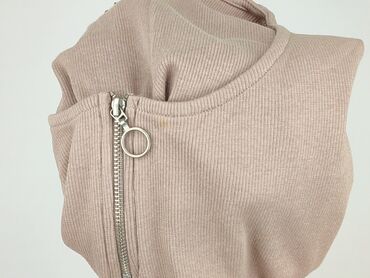 Bluzka prążkowana Sinsay – rozmiar S - Kolor: jasny beż/ecru, delikatny prążek - Fason: dopasowany, długi rękaw - Golf typu mock neck (półgolf) - Ozdobne złote napy na lewym ramieniu – zapięcie na...