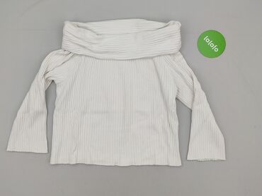 Długi rękawBiała, prążkowana bluzka damska z szerokim, zawijanym golfem/off-shoulder