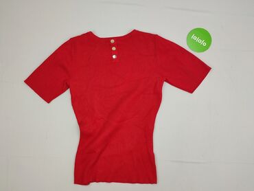 Bluzka damska Mohito Collection, rozmiar M. - Kolor: intensywna czerwień - Krój: prosty, lekko dopasowany; krótkie rękawki typu cap - Dekolt: okrągły z efektownym rozcięciem i małą złotą wstawką -...