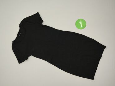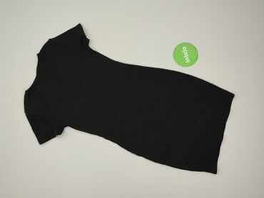 Czarna, prążkowana sukienka basic Sinsay - Rozmiar: S (z metki) - Krój: dopasowany, długość midi/przed kolano - Rękaw: krótki - Dekolt: okrągły - Materiał: 95% bawełna, 5% elastan – elastyczna, mi...