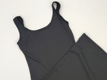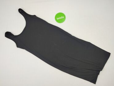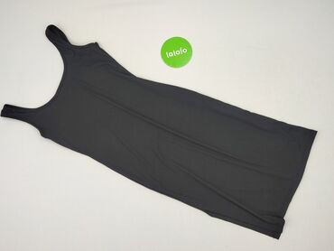 Czarna sukienka damska bez rękawów, rozmiar M. - Fason: prosta góra z okrągłym dekoltem, odcięcie w talii, lekko rozkloszowany dół do kolan. - Materiał: elastyczna tkanina o drobnej, tłoczonej/str...